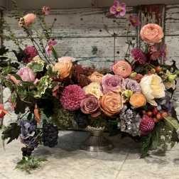 Price: $185.00Medium silver urn filled with spring summer premium blossoms